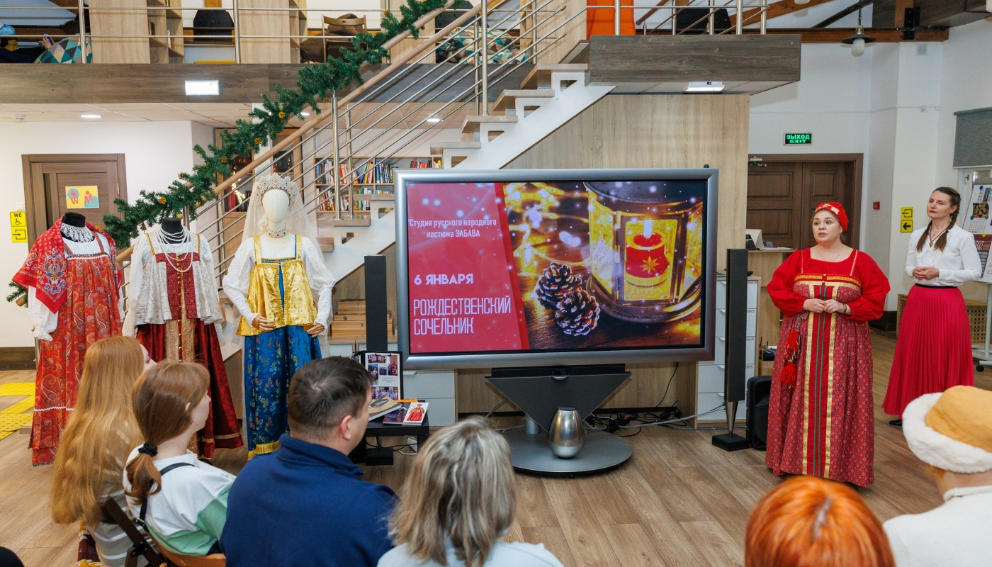 В рамках вечера гости узнали о традициях празднования Рождества в России. Послушали рассказ об истории русских праздничных женских нарядов. Поговорили о гаданиях, основанных на рождественских приметах. Попробовали традиционное блюдо рождественского сочельника.